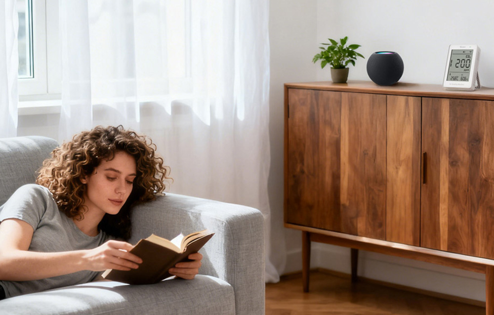 Suportul pentru standardul Matter permite integrarea cu platformele populare de casă inteligentă. Asocierea se face prin scanarea codului Matter, ceea ce facilitează configurarea. Odată conectat la sistem, puteți verifica nivelurile de CO₂ folosind asistentul vocal și puteți crea automatizări, cum ar fi pornirea ventilației atunci când o anumită valoare este depășită.