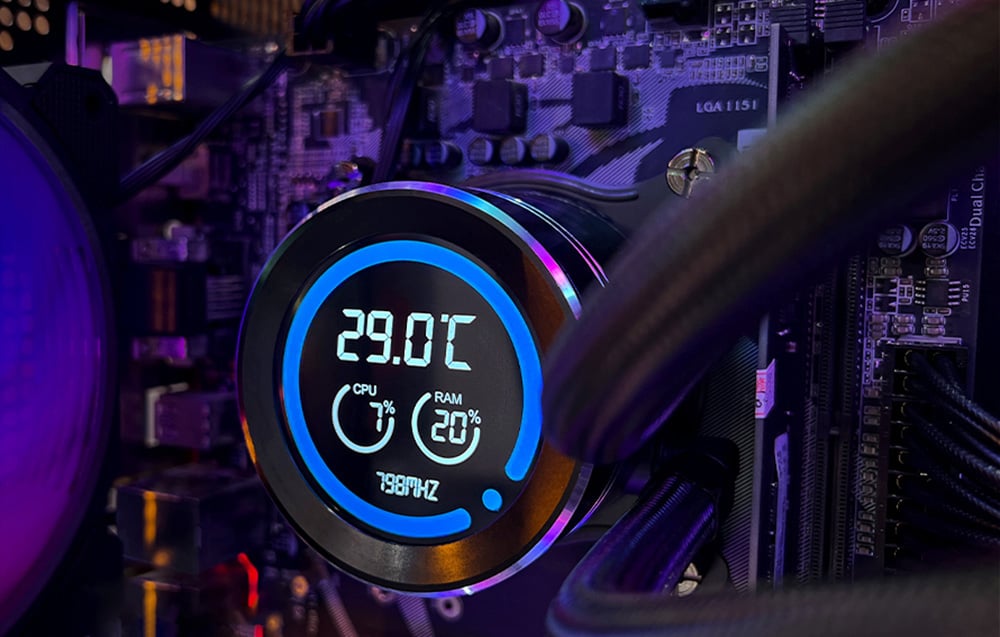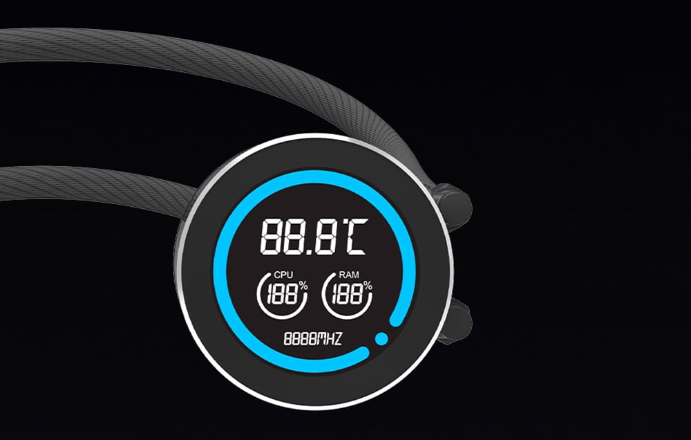 Blocul de apă dispune de un afișaj LCD de 2,1 inchi, care oferă o rezoluție de 480x480 px și 16,7 milioane de culori. Acesta oferă informații despre temperatura procesorului (CPU), RAM și viteza pompei, permițându-vă să monitorizați parametrii direct pe răcire. Acest lucru vă facilitează ajustarea sistemului la nevoile dvs. Produsul Darkflash funcționează, de asemenea, cu un software dedicat, care vă permite să controlați complet setările de răcire și să monitorizați performanța sistemului. Datorită interfeței intuitive, puteți regla viteza ventilatoarelor și puteți monitoriza temperatura procesorului și a altor componente.