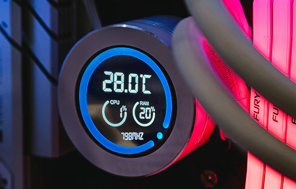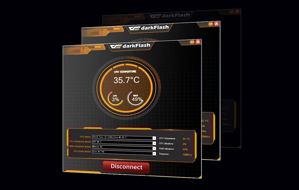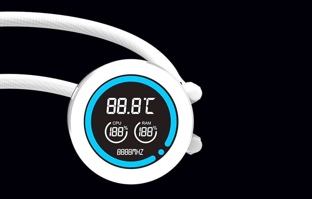 Blocul de apă dispune de un afișaj LCD de 2,1 inchi, care oferă o rezoluție de 480x480 px și 16,7 milioane de culori. Acesta oferă informații despre temperatura procesorului (CPU), RAM și viteza pompei, permițându-vă să monitorizați parametrii direct pe răcire. Acest lucru vă facilitează ajustarea sistemului la nevoile dvs. Produsul Darkflash funcționează, de asemenea, cu un software dedicat, care vă permite să controlați complet setările de răcire și să monitorizați performanța sistemului. Datorită interfeței intuitive, puteți regla viteza ventilatoarelor și puteți monitoriza temperatura procesorului și a altor componente.