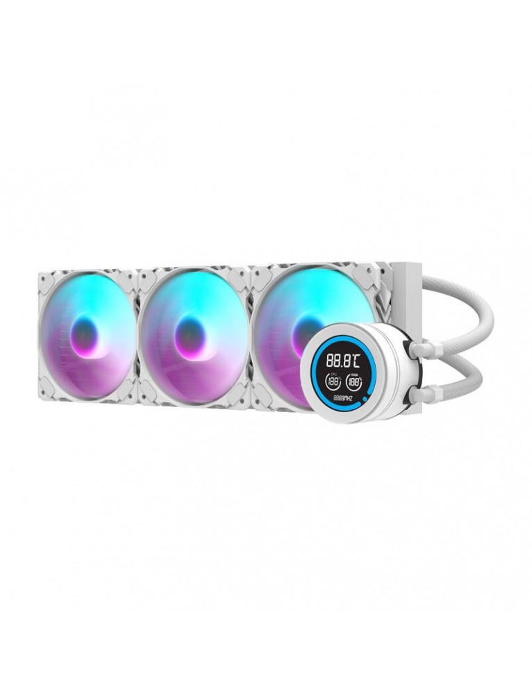 Darkflash DN-D360 este un puternic răcitor de apă de 360 mm care asigură funcționarea stabilă a procesorului la temperaturi scăzute. Acesta dispune de un bloc de apă din cupru și un heatsink din aluminiu pentru a disipa eficient căldura, ceea ce este esențial atunci când sistemul este foarte încărcat. Trei ventilatoare de 120 mm cu rulmenți hidraulici, control PWM și iluminare de fundal ARGB garantează un flux de aer optim și o funcționare silențioasă. Un afișaj LCD vă permite să monitorizați temperaturile CPU și RAM, în timp ce tuburile IIR+EPDM asigură rezistența la temperaturi ridicate și durabilitatea designului.