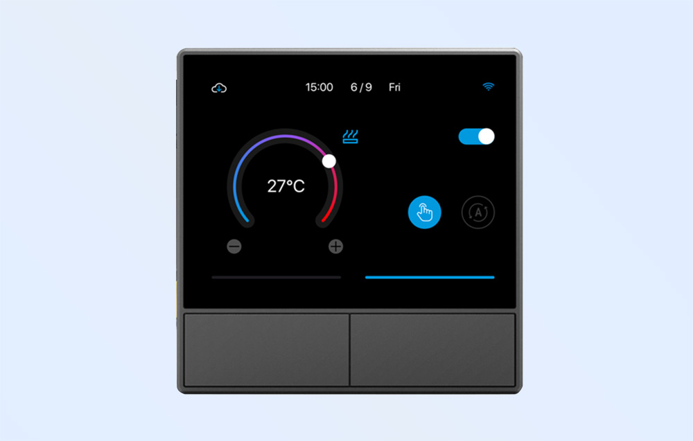 Acum puteți controla în mod convenabil dispozitivele dvs. și activa scenele inteligente selectate cu doar câteva atingeri. Întrerupătorul de perete Sonoff este echipat cu un panou HMI cu ecran tactil care oferă acces rapid la multe funcții utile. Cu ajutorul acestuia, puteți opera cu ușurință iluminatul, regla funcționarea aerului condiționat și multe altele! În plus, există 2 butoane fizice sub afișaj care vă vor permite să controlați 2 dispozitive independent - de exemplu, cele pe care le utilizați cel mai des.